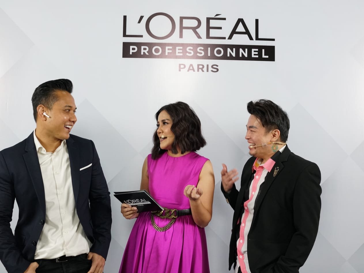 (Kiri ke kanan) Hendra Purjaka, Brand General Manager L’Oréal Professionnel; Ivy Batuta, Master of Ceremony; dan Indra Tanudarma, Head of Education L’Oréal Professionnel.