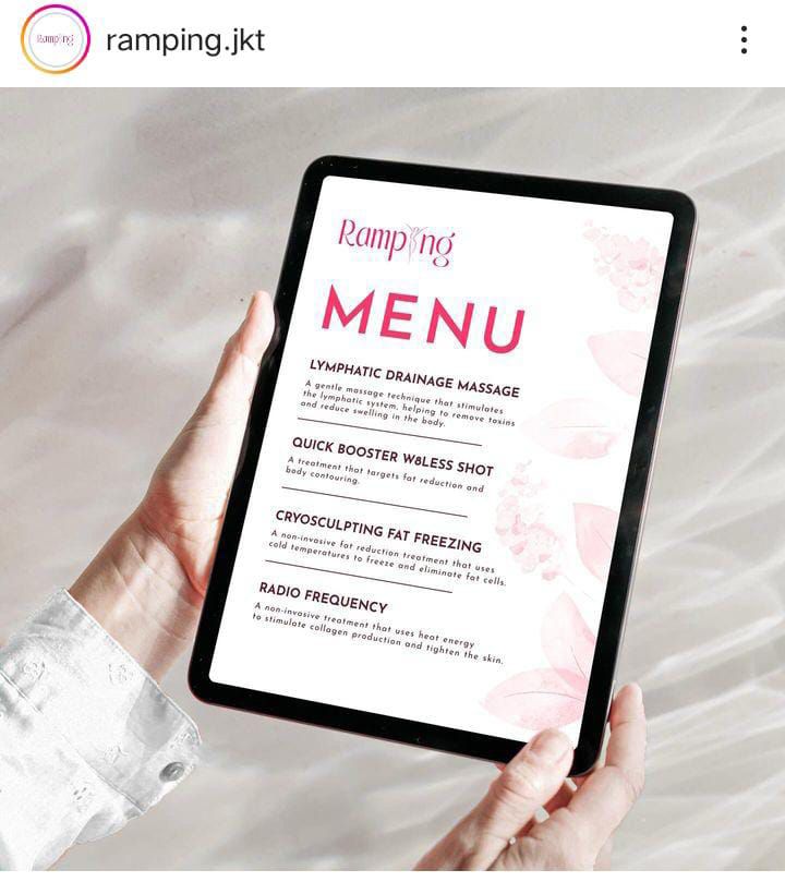 Selain program yang dipersonalisasi, Ramping juga menawarkan berbagai slimming treatment. Antara lain: Cryosculpting, Radio Frequency, Meso, dan Lymphatic Drainage Massage.