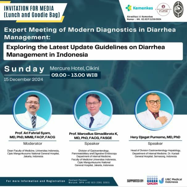 Dalam kaitan ini, PB PGI mengadakan webinar bertema “Expert Meeting of Modern Diagnostics in Diarrhea Management: Exploring the Latest Update Guidelines on Diarrhea Management in Indonesia” pada Minggu (15/12/21024).