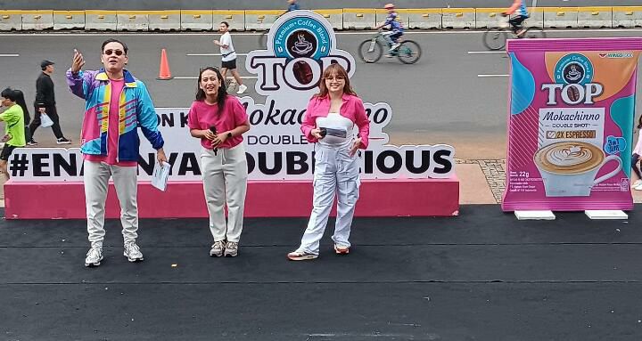 Momen tersebut juga memberikan kesempatan bagi para peserta untuk mencicipi produk baru Top Mokachinno Double Shot sambil menikmati suasana pagi hari di tengah kota.