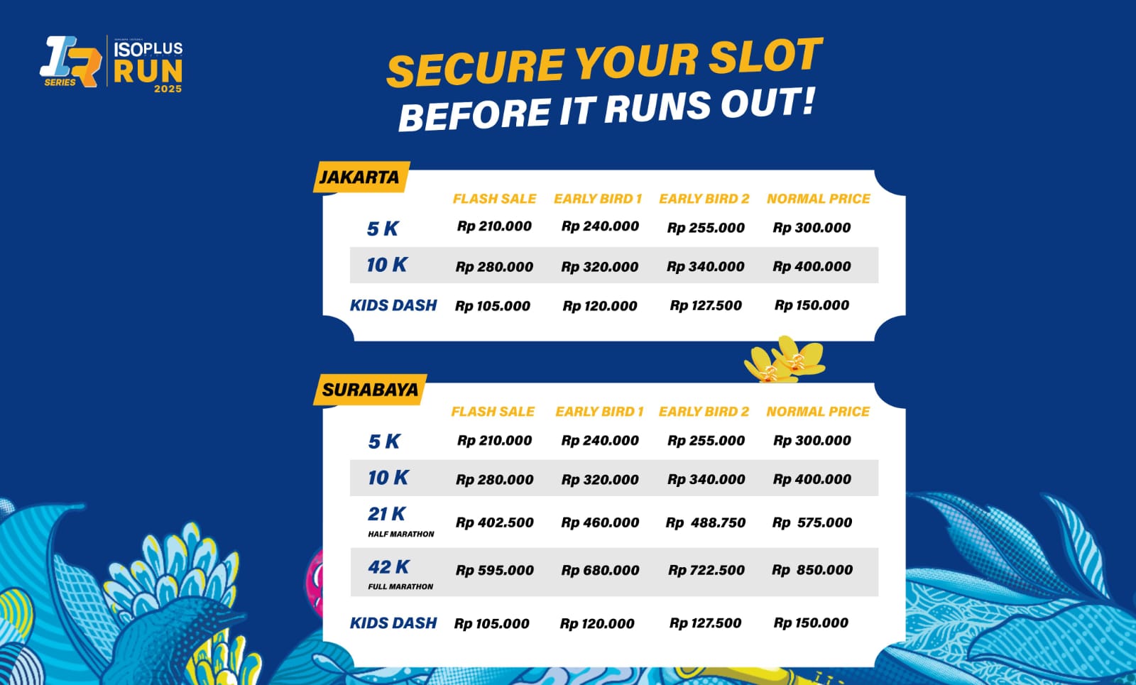 Jangan lewatkan flash sale Isoplus Run Series 2025 dan pantau terus website http://www.isoplusrun.com atau kunjungi akun Instagram @isoplus7ion.