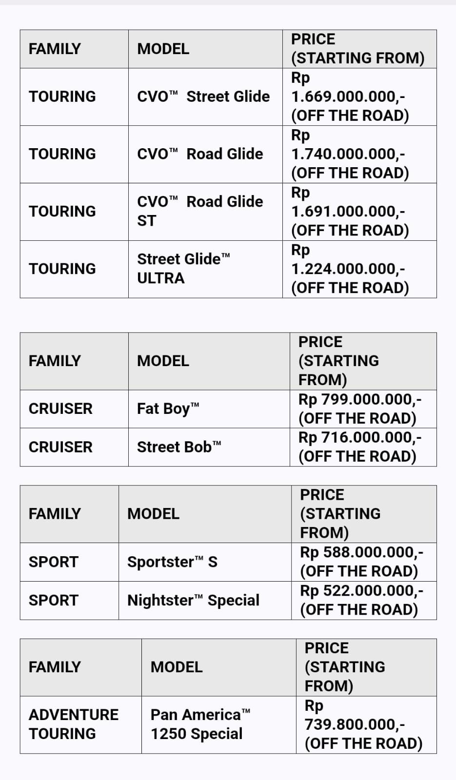 HARGA MODEL-MODEL HARLEY-DAVIDSON®