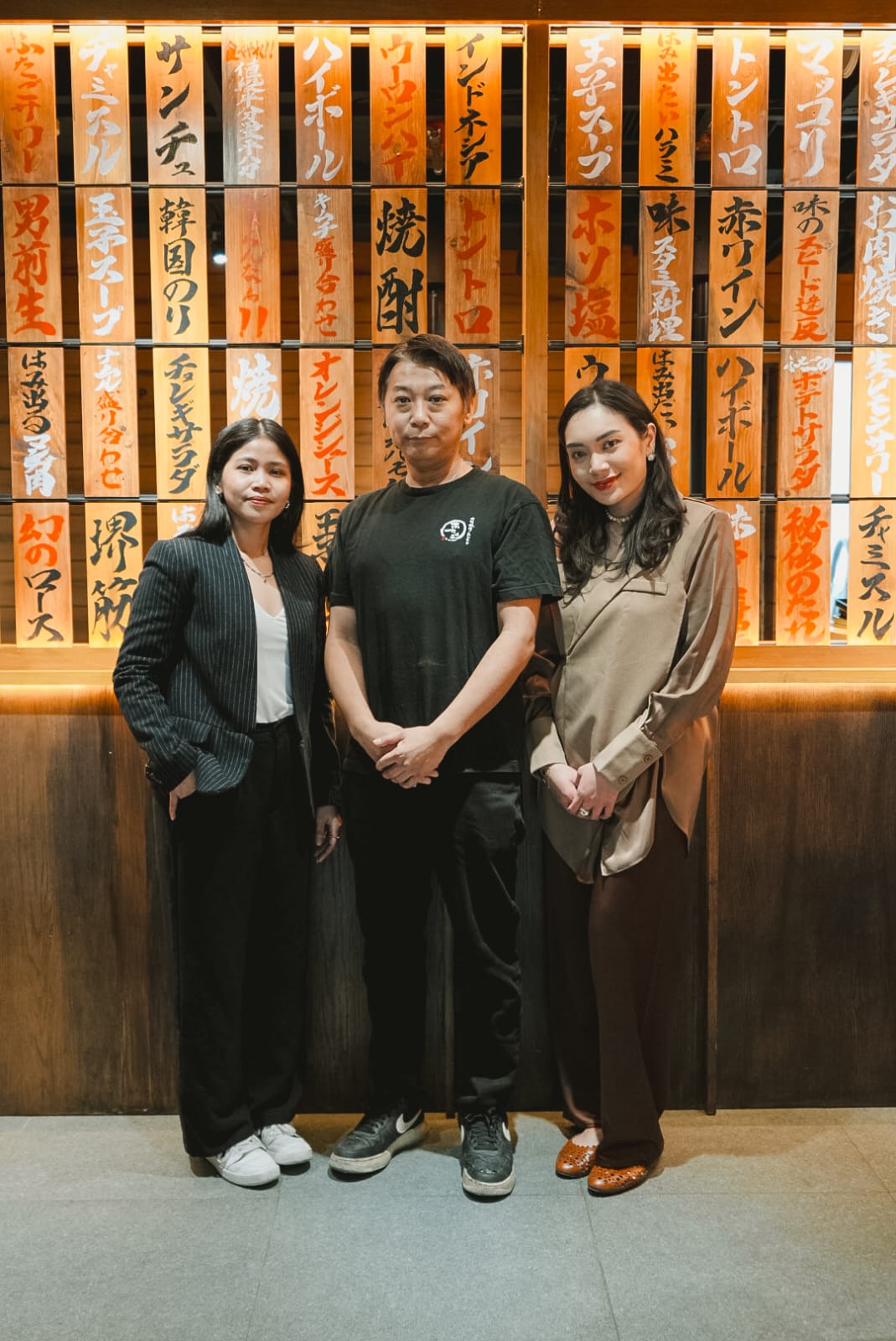 (Tengah) Yoshida, Head Chef & Butcher Restoran Yakiniku Futago Izakaya didampingi Siti Rahayu, Brand Manager Yakiniku Futago (kiri).