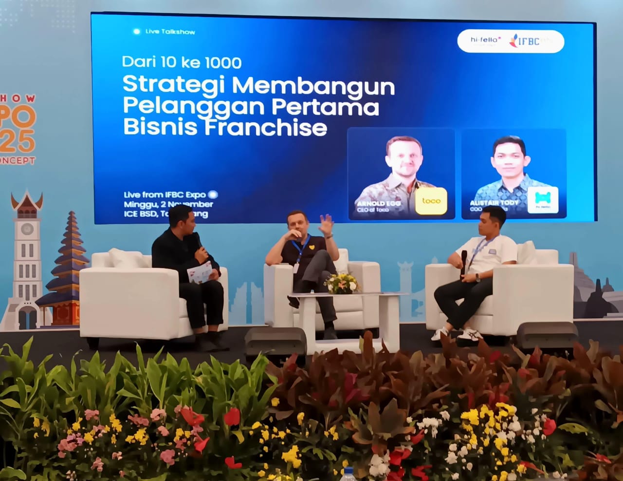 (Kiri ke kanan) Fredy Ferdianto Head of Public Relations Asosiasi Franchise Indonesia (AFI) & Neo Promosindo, penyelenggara IFBC (International Franchise Business Concept); Arnold Sebastian Egg, Founder & CEO Toco, dan Alistair Tody, COO Hi-Fella.