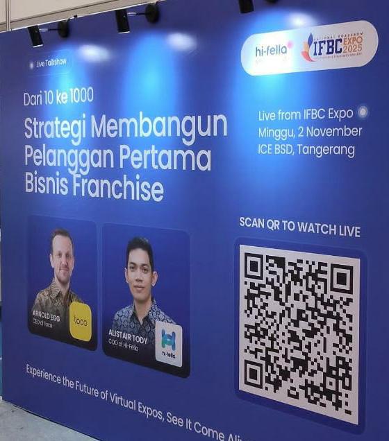 JagatBisnis.id, Tangerang, 2 November 2025 – Hi-Fella, sebuah platform virtual expo dan live streaming yang telah dikenal luas karena kemampuannya dalam menghubungkan pelaku usaha dari berbagai industri di Indonesia dan luar negeri, secara resmi menjadi Strategic Digital Partner dalam gelaran Info Franchise & Business Concept (IFBC) 2025.