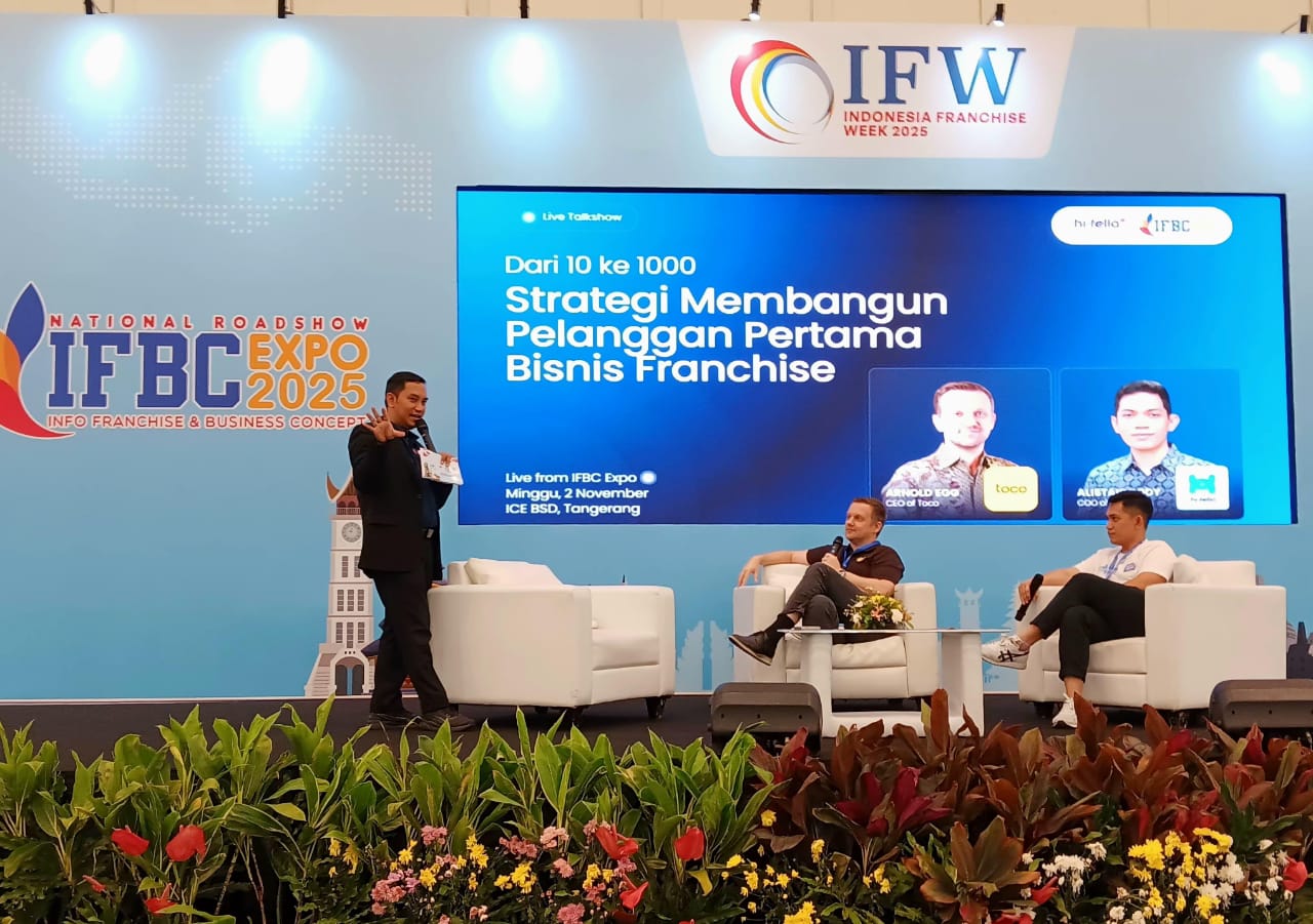 Sementara itu, Arnold Egg, Founder & CEO Toco, berbagi wawasan tentang bagaimana teknologi dan marketplace dapat membantu franchise owner meraih pelanggan pertama mereka, mengatasi tantangan dalam mendapatkan kepercayaan pelanggan, dan membangun loyalitas yang berkelanjutan.