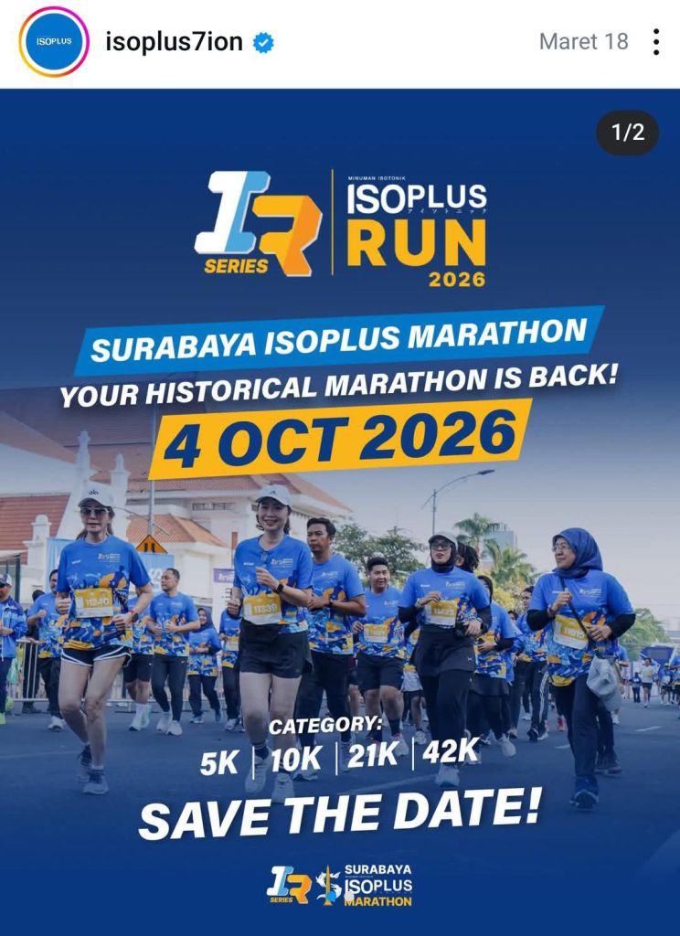 Tahun ini, Isoplus Run Series akan kembali diselenggarakan di dua kota besar, yaitu Jakarta pada 6 September 2026 dan Surabaya pada 4 Oktober 2026.